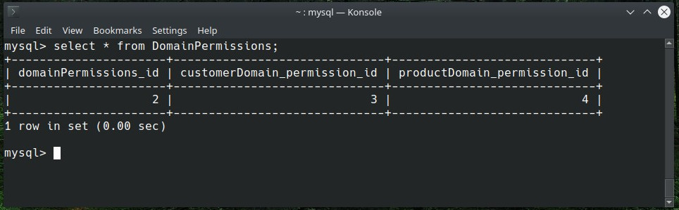 But an important thing is if a new subclass (domain) creation occurs in the future, a new null column will add to the “DomainPermissions” table and all of the before rows will mark at this column as null, this is an unwanted situation, so I had to pay attention for potential null pointer exceptions and Data Integrity. To prevent this I rearrange the DomainPermissions class and define a DEFAULT Constraint per domain such as: